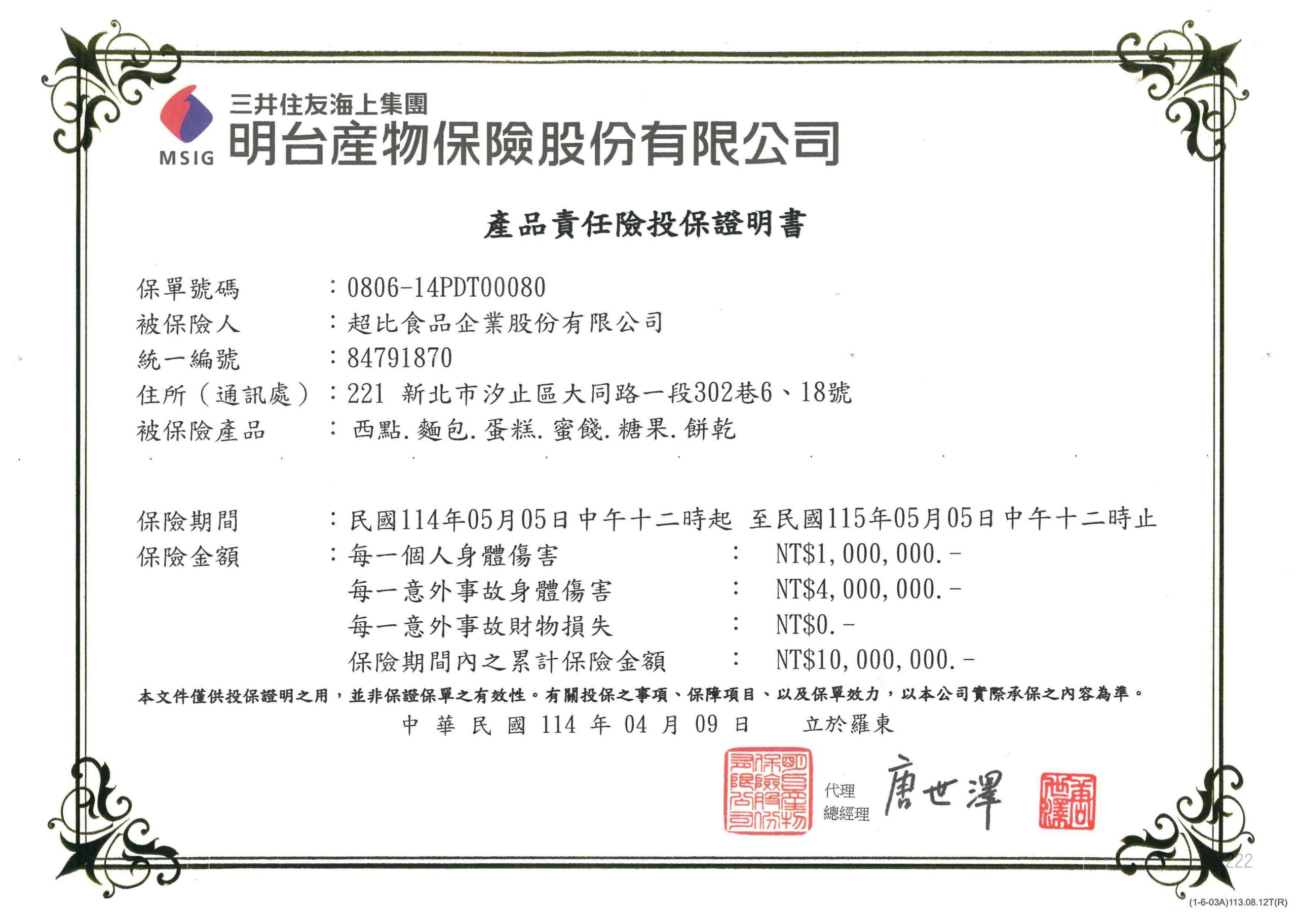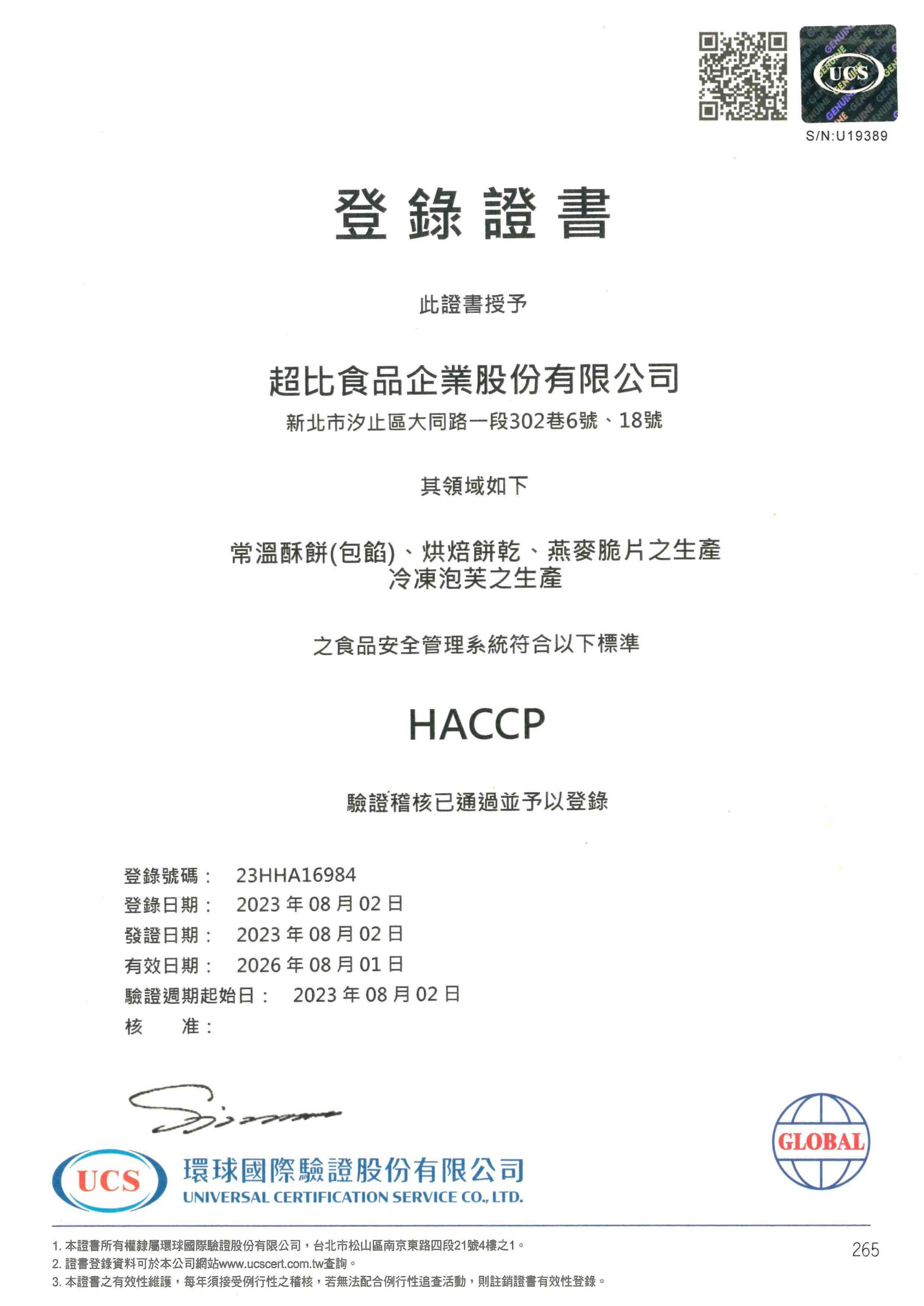 除了食安認證,超比食品在企業信用上有什麼國際級保障?