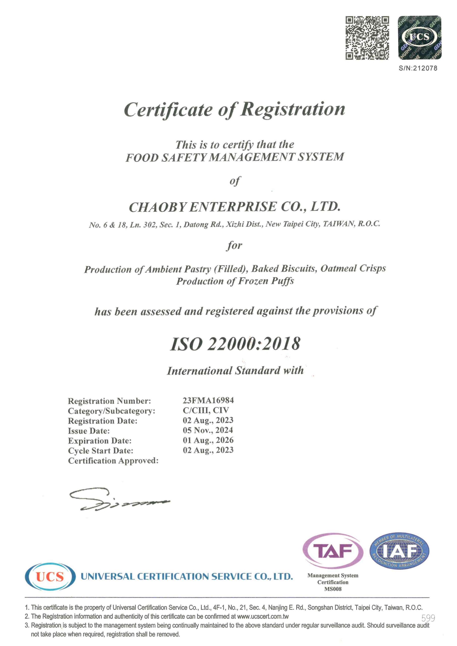 超比食品為符合 ISO 22000 及 HACCP 認證之專業食品工廠,並具備多年外銷各國實戰經驗。我們符合美國 FDA 註冊資格,熟悉各國出口法規,協助您的品牌直接出海、佈局全球市場。
